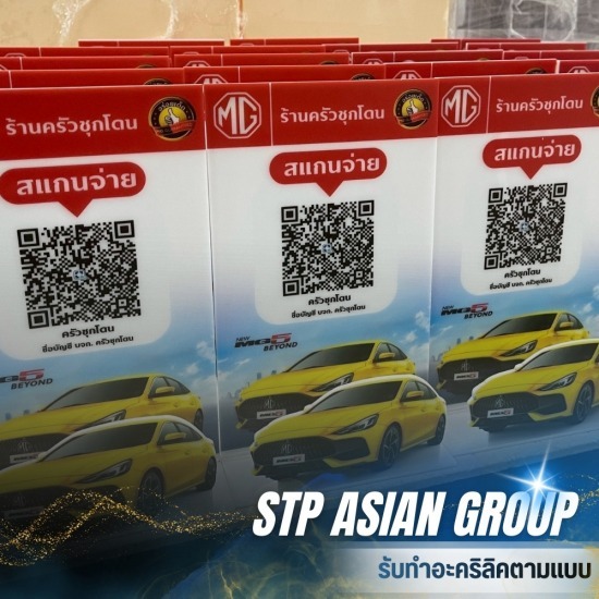 • ป้ายสแกน QR Code: กำลังมาแรงมาก! พิมพ์สกรีน QR Code ลงบนอะคริลิค หรือทำเป็นกรอบใส่ สแกนง่าย สีไม่ลอก ทนทานต่อการเช็ดทำความสะอาดบ่อยๆ
